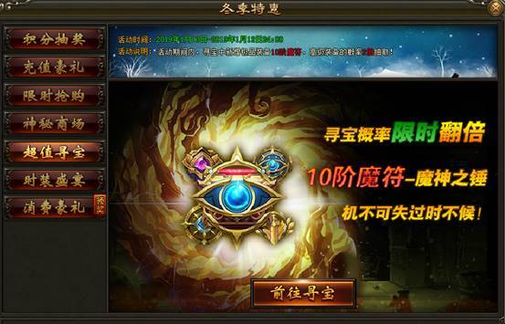1. 活动期间,王之宝藏可抽取10级魔符,高级装备概率翻倍!活动限时3天,机不可失过时不候
