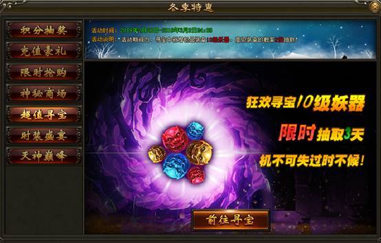 1. 活动期间,王之宝藏可抽取10阶魔符装备!高级装备概率翻倍!活动限时3天,机不可失过时不候