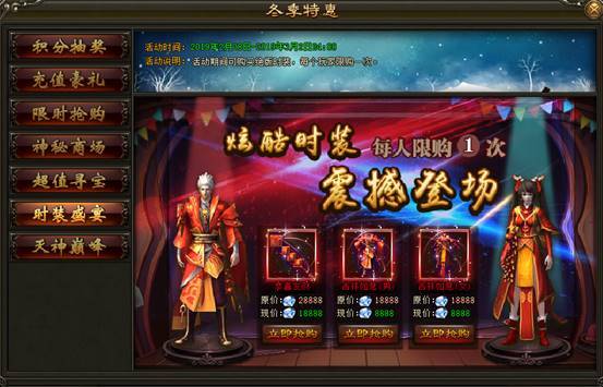 2. 活动期间内,玩家可购买绝版活动时装,每个玩家限购一次
