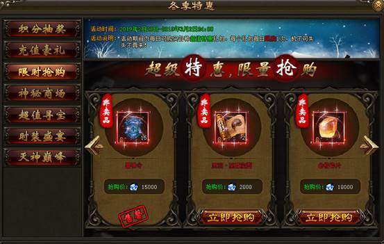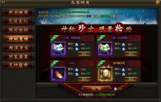 2. 活动期间内,神秘商场每日刷新各种珍稀道具,打折出售限量抢购。
