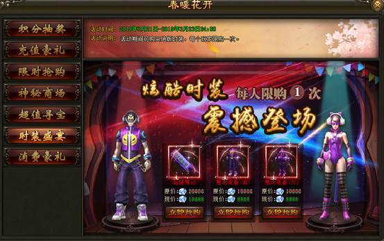 2. 活动期间内,玩家可购买绝版活动时装,每个玩家限购一次