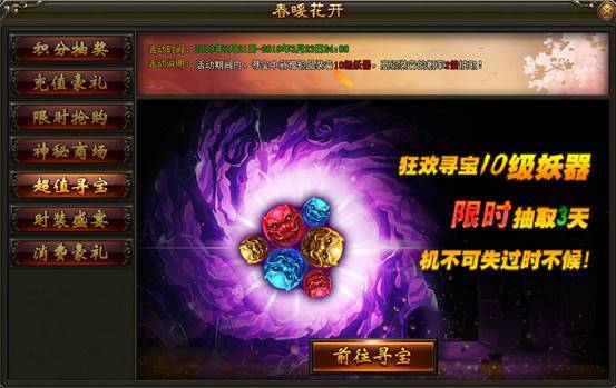 1. 活动期间,王之宝藏可抽取10阶妖器装备!高级装备概率翻倍!活动限时3天,机不可失过时不候