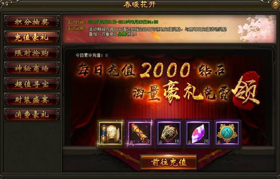 2. 活动期间内,每日充值达指定钻石数额,即可领取充值奖励,可原每日充值奖励叠加领取。