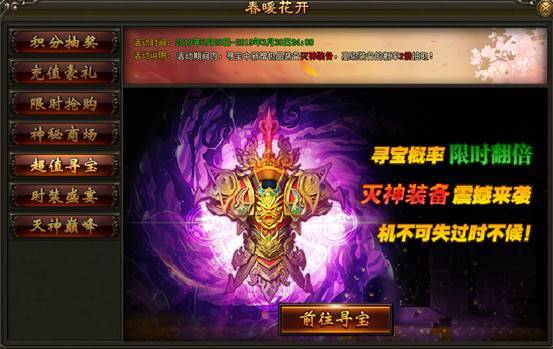 1. 活动期间,王之宝藏可抽取灭神装备!高级装备概率翻倍!活动限时3天,机不可失过时不候