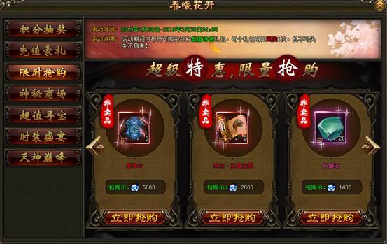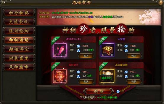 2. 活动期间内,神秘商场每日刷新各种珍稀道具,打折出售限量抢购。