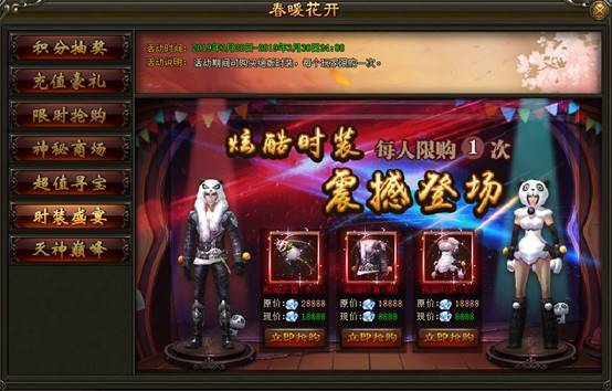 2. 活动期间内,玩家可购买绝版活动时装,每个玩家限购一次