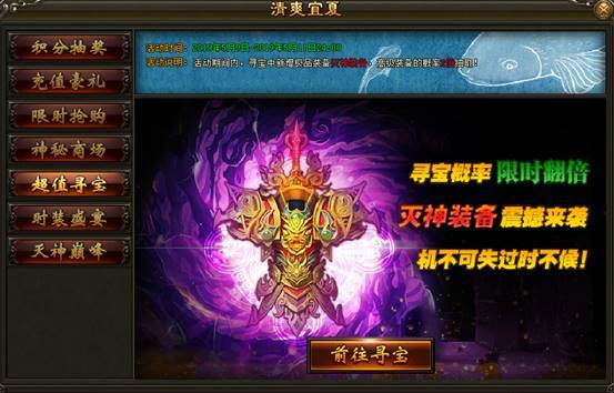 1. 活动期间,王之宝藏可抽取灭神装备!高级装备概率翻倍!活动限时3天,机不可失过时不候