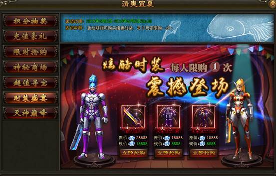 2. 活动期间内,玩家可购买绝版活动时装,每个玩家限购一次