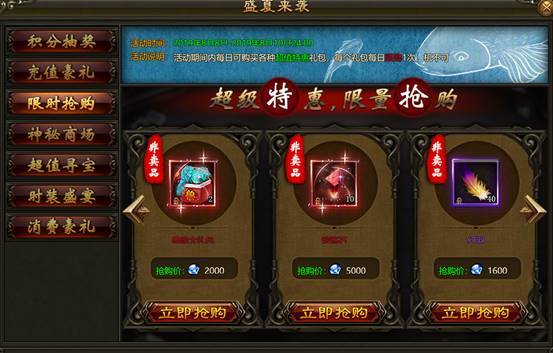 2. 活动期间内,神秘商场每日刷新各种珍稀道具,打折出售限量抢购。
