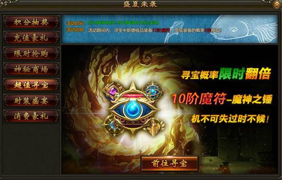 1. 活动期间,王之宝藏可抽取灭神装备!高级装备概率翻倍!活动限时3天,机不可失过时不候