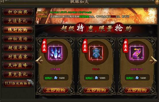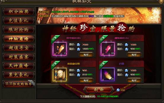 2. 活动期间内,神秘商场每日刷新各种珍稀道具,打折出售限量抢购。