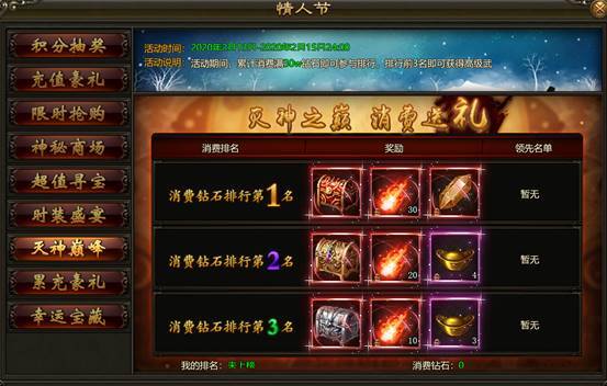 3. 有两档奖励可领取:2000钻石、20000钻石。每档都有丰厚豪礼免费领取。