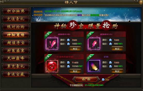 2. 活动期间内,神秘商场每日刷新各种珍稀道具,打折出售限量抢购。