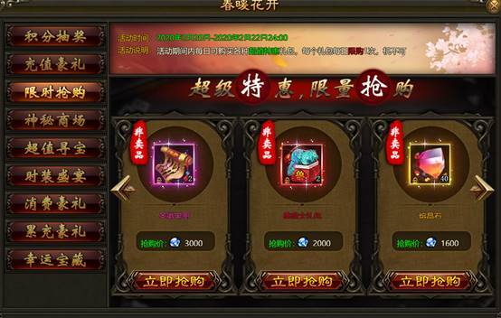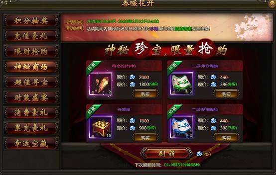 2. 活动期间内,神秘商场每日刷新各种珍稀道具,打折出售限量抢购。