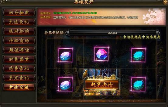 1. 活动期间,王之宝藏可抽取妖器装备!高级装备概率翻倍!活动限时3天,机不可失过时不候