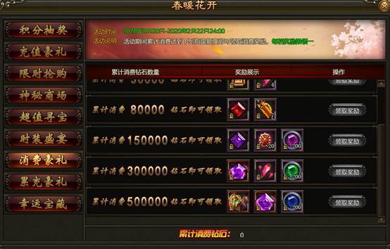 3. 有两档奖励可领取:2000钻石、20000钻石。每档都有丰厚豪礼免费领取。