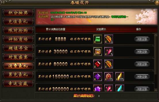 3. 有两档奖励可领取:2000钻石、20000钻石。每档都有丰厚豪礼免费领取。