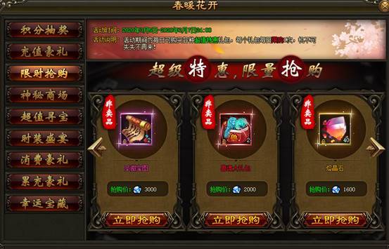 2. 活动期间内,神秘商场每日刷新各种珍稀道具,打折出售限量抢购。