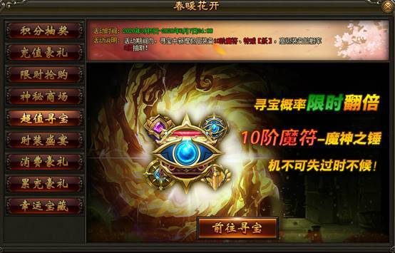 1. 活动期间,王之宝藏可抽取妖器装备!高级装备概率翻倍!活动限时3天,机不可失过时不候