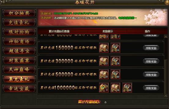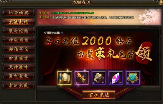 2. 活动期间内,每日充值达指定钻石数额,即可领取充值奖励,可原每日充值奖励叠加领取。