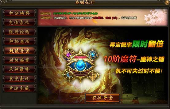 1. 活动期间,王之宝藏可抽取妖器装备!高级装备概率翻倍!活动限时3天,机不可失过时不候