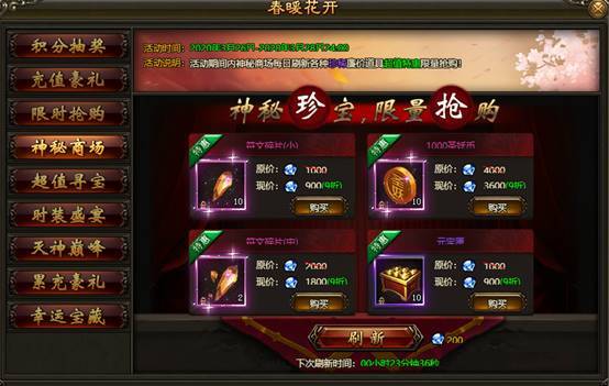 2. 活动期间内,神秘商场每日刷新各种珍稀道具,打折出售限量抢购。