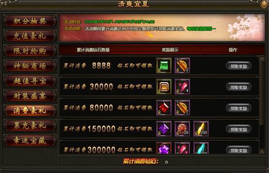 3. 有两档奖励可领取:2000钻石、20000钻石。每档都有丰厚豪礼免费领取。