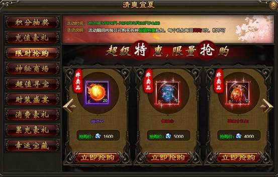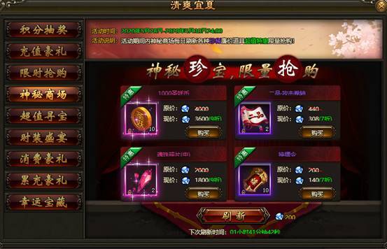 2. 活动期间内,神秘商场每日刷新各种珍稀道具,打折出售限量抢购。
