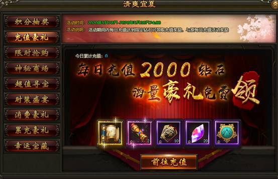 2. 活动期间内,每日充值达指定钻石数额,即可领取充值奖励,可原每日充值奖励叠加领取。