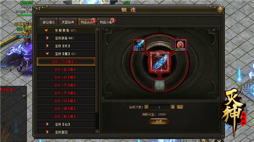 装备部位强化是《灭神》中最基础的提升装备属性的方法,玩家只需花费元宝即可对武器、头盔、手镯、戒指、腰带、衣服、项链、鞋子几项内容进行装备强化。随着装备强化等级的不断提升,所需的元宝也会越多,玩家需要即将装备所有位置从零开始均匀强化,而不是只单单强化某一个部位的装备,当全身装备部位达到指定强化等级后,玩家从战斗中就可以看到角色战斗力有明显提升。