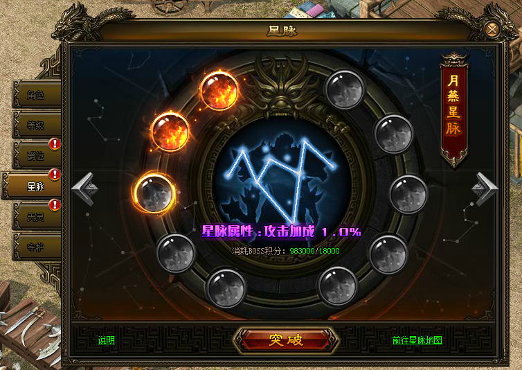 系统开放:玩家角色等级达到230级,即可开启星脉系统